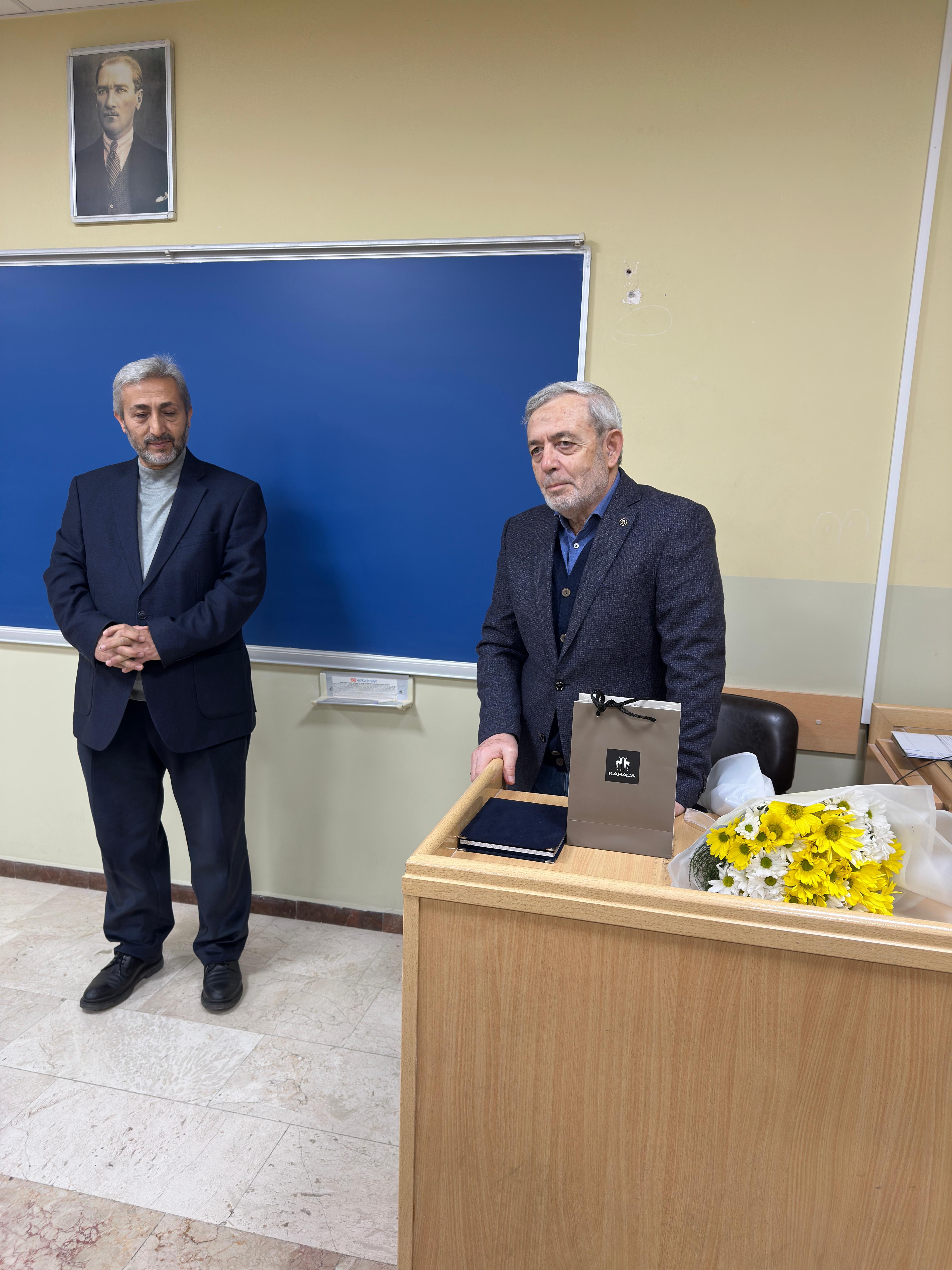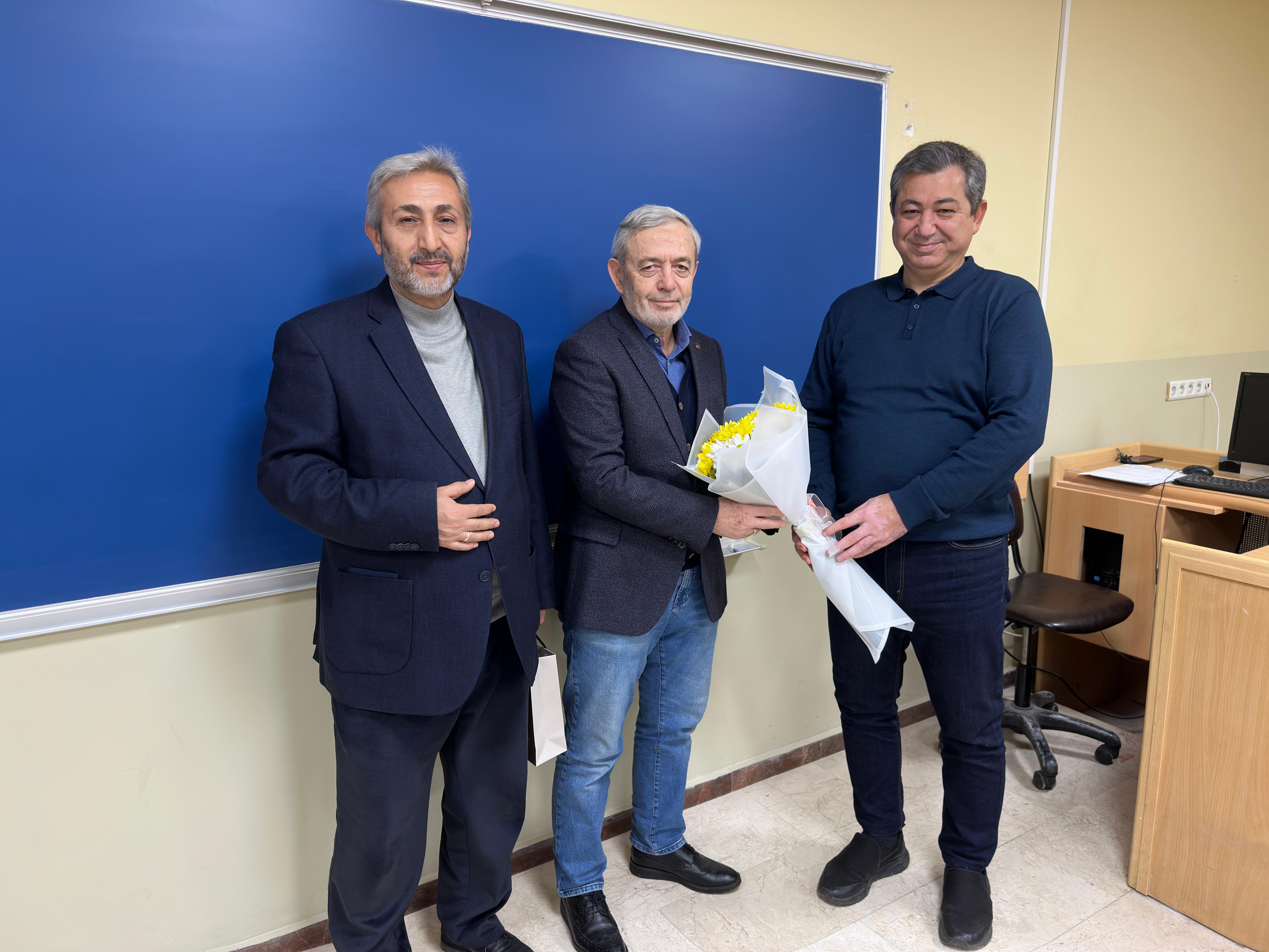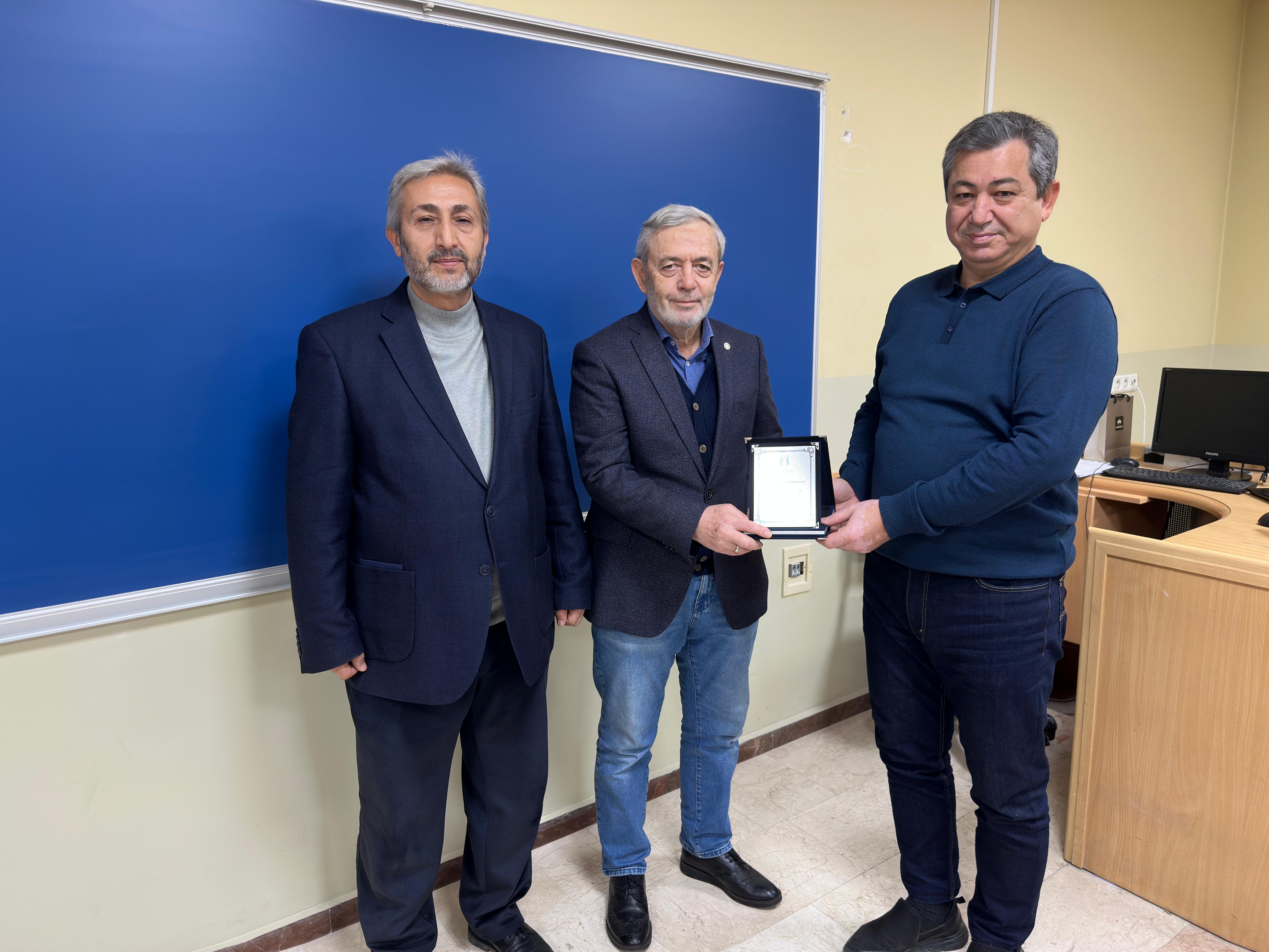 Üniversiteye ve Makine Mühendisliği Bölümüne uzun yıllar boyunca sunduğu değerli katkılar dolayısıyla hazırlanan plaket ve çiçek, Teknoloji Fakültesi Dekanı Prof. Dr. Zafer Tatlı tarafından Prof. Dr. İbrahim Özsert’e takdim edildi.